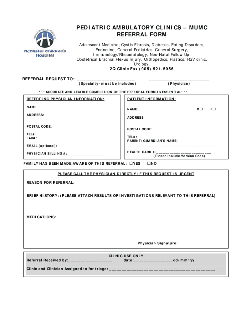 Pediatric Ambulatory Clinics Referral is not the form you're looking for?Search for another form here.