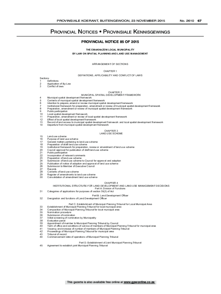 85Bylaw On Spatial Planning And Land Use Management: The eMakhazeni Local
