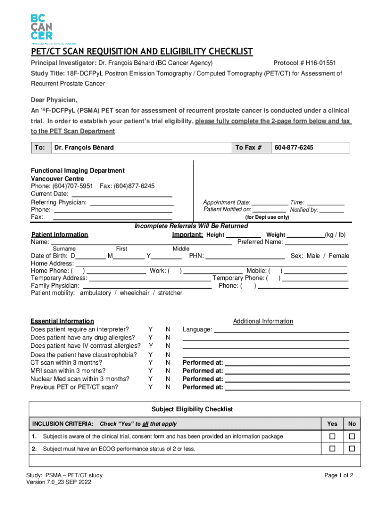 Get the free pet/ct scan requisition and eligibility checklist - Vancouver