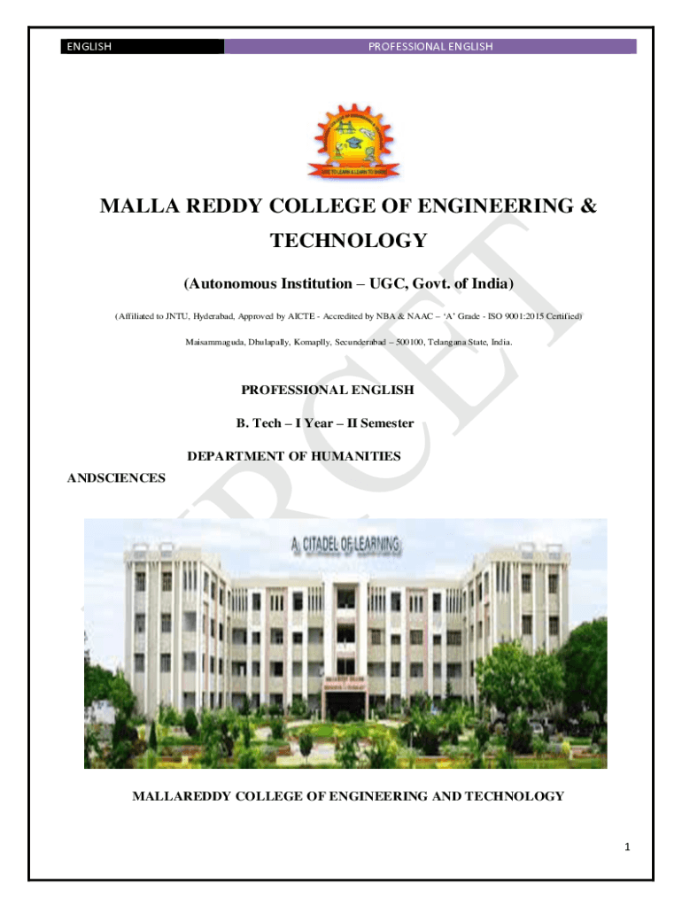 ENGLISHPROFESSIONAL ENGLISHMAN REDDY COLLEGE OF ENGINEERING & TECHNOLOGY (Autonomous Institution UGC, Govt. of India) (Affiliated to JNT, Hyderabad, Approved by ACTE Accredited by NBA & NAACP A Grade