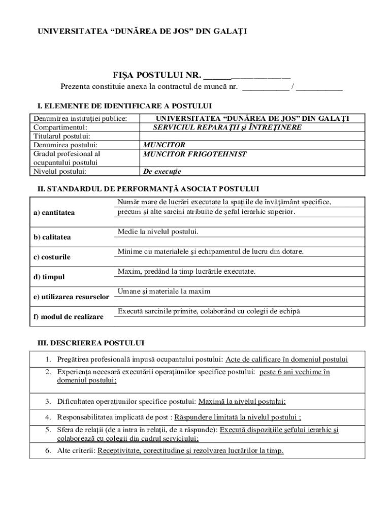 UNIVERSITIES DUN REA DE JOB DIN GALATIA POSTAL NR. ___