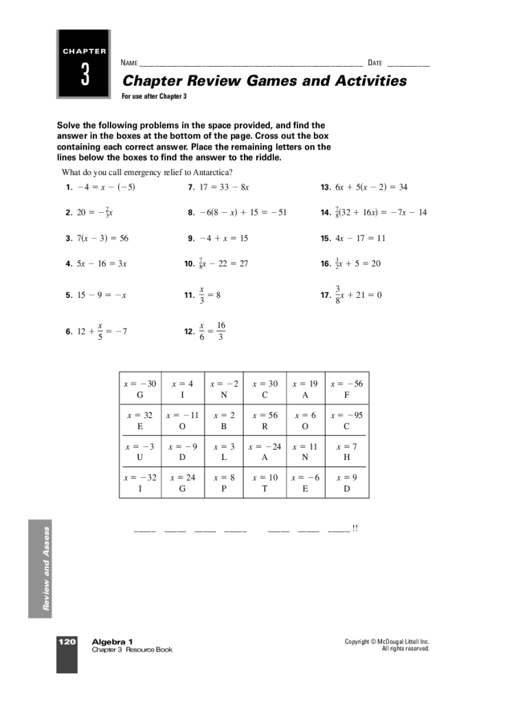 119100_107133.qxd320200111:15 Rampage 120CHAPTERNAME ___ DATE ___3Chapter Review Games and Activities For use after Chapter 3Solve the following problems in the space provided, and find the answer