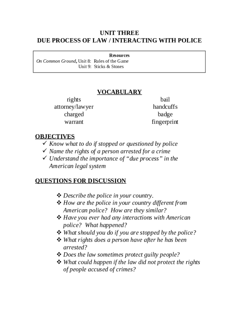 Frequently asked questions about the form DUE PROCESS OF LAW / INTERACTING WITH POLICE