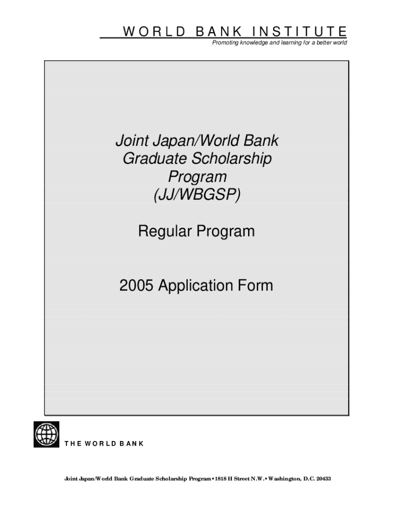 WORLD BANK INSTITUTE Promoting knowledge and learning for a better worldJoint Japan/World Bank Graduate Scholarship Program (JJ/WB GSP) Regular Program2005 Application Forth WORLD Banjoist Japan/World