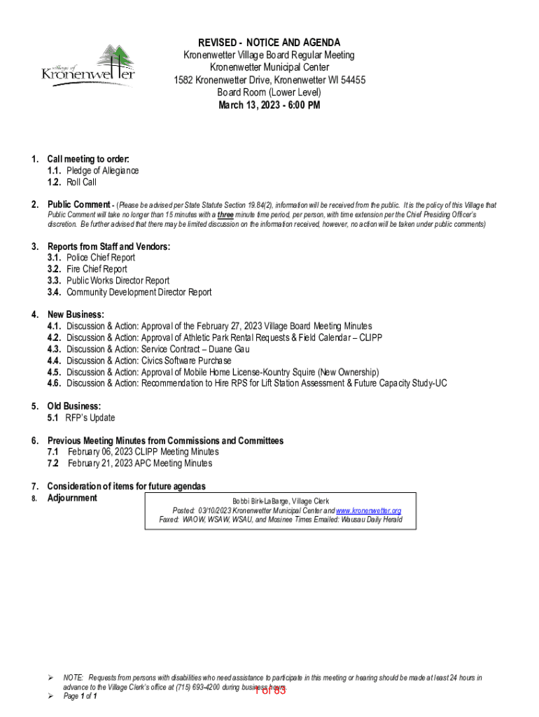 Edit your notice and agenda kronenwetter form online