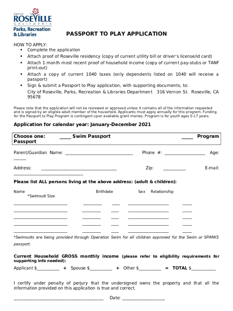Instructions for the Passport to Play Application form