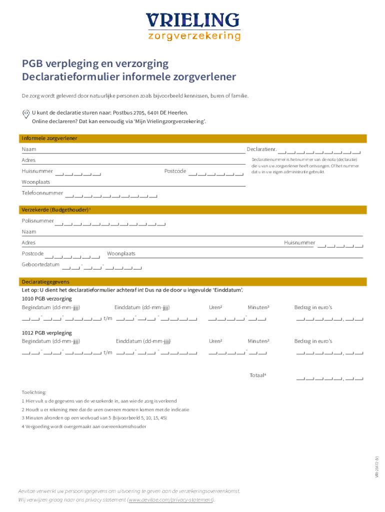 Pak de gratis Nota pgb Verpleging en Verzorging declareren