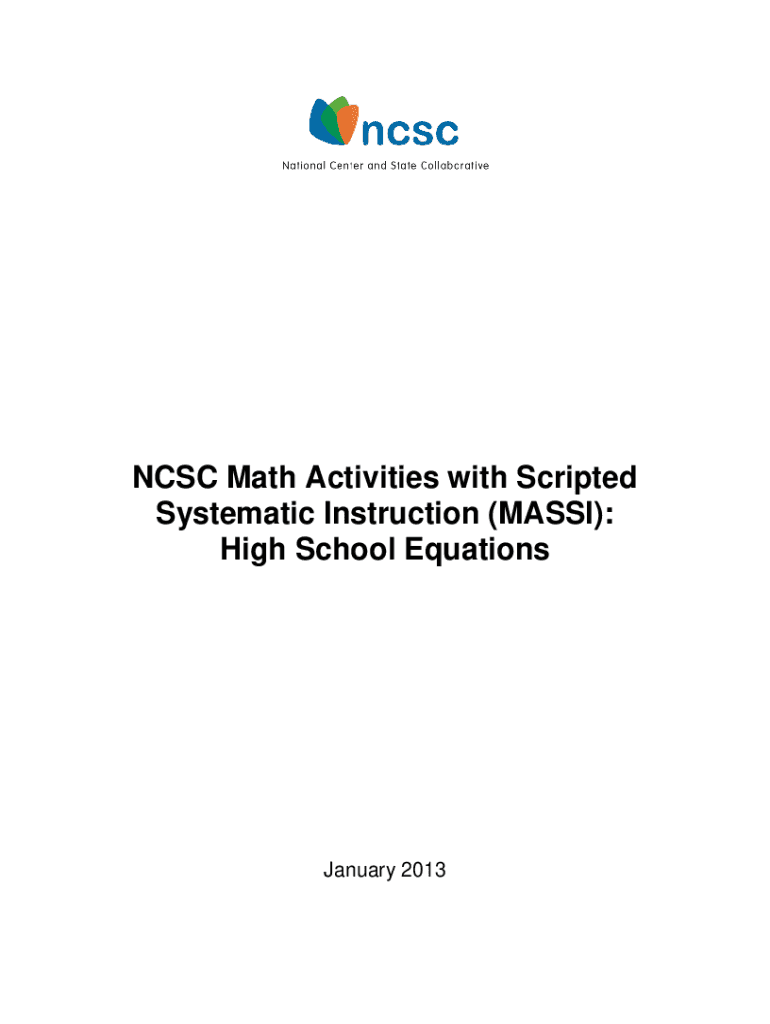 NTSC Math Activities with Scripted Systematic Instruction (MASS): High School Equations January 2013The National Center and State Collaborative (NTSC) is applying the lessons learned from the past