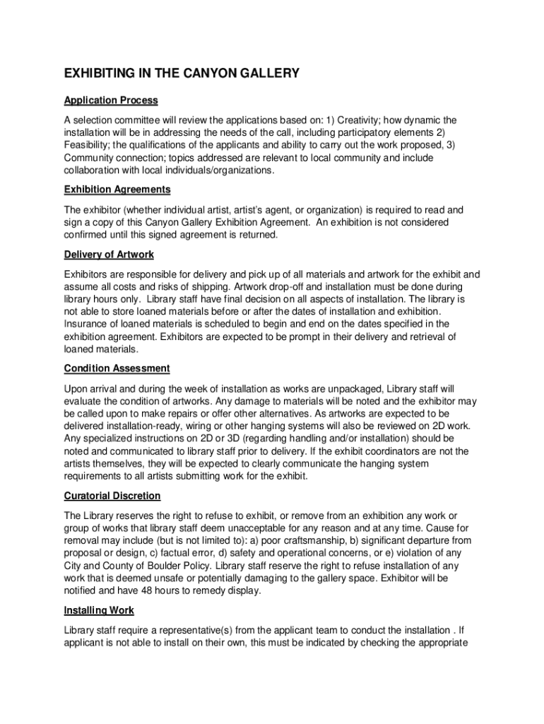 EXHIBITING IN THE CANYON GALLERY Application Process A selection committee will review the applications based on: 1) Creativity; how dynamic the installation will be in addressing the needs of the