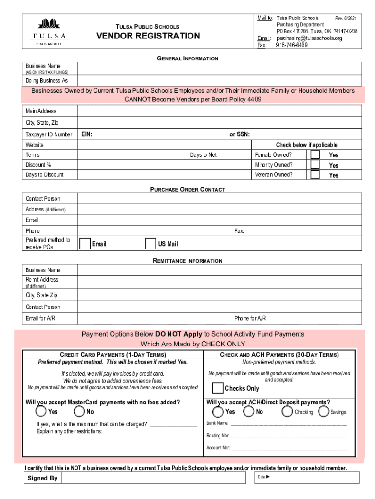 OK Tulsa Public Schools Vendor Registration Form Versions