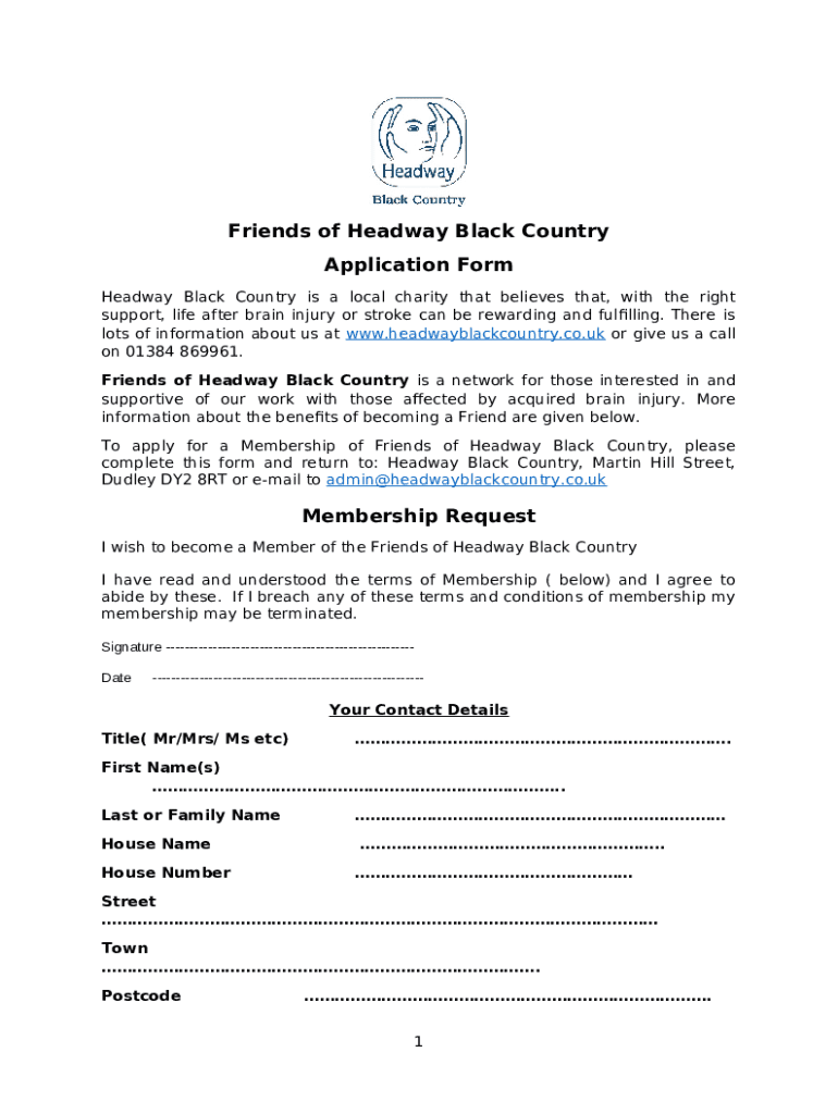 Frequently asked questions about the form Friends of Headway Black Country Application