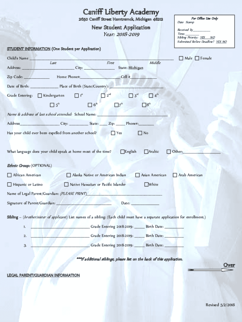 Get the free New Student Application - Caniff Liberty Academy
