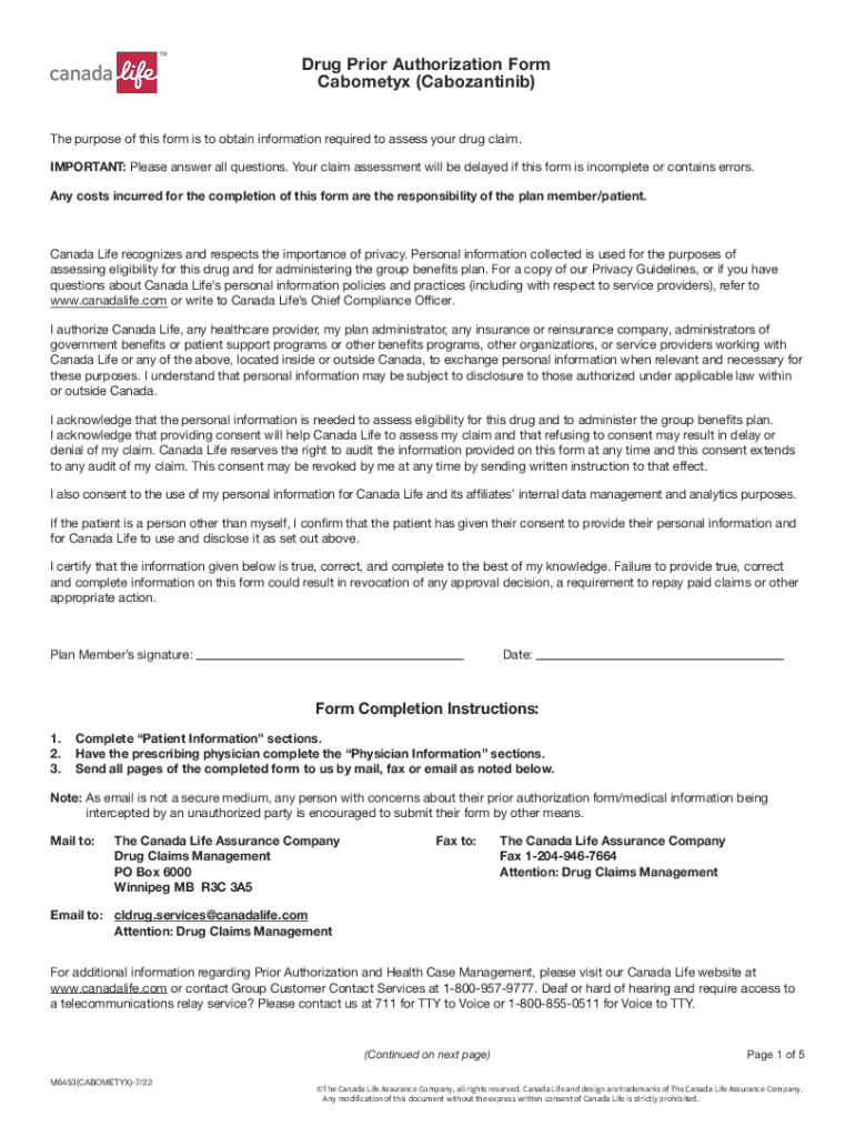 This document contains both information and form fields. To read information, use the Down Arrow from a form field. Drug Prior Authorization Form Cabometyx (Cabozantinib) The purpose of this form