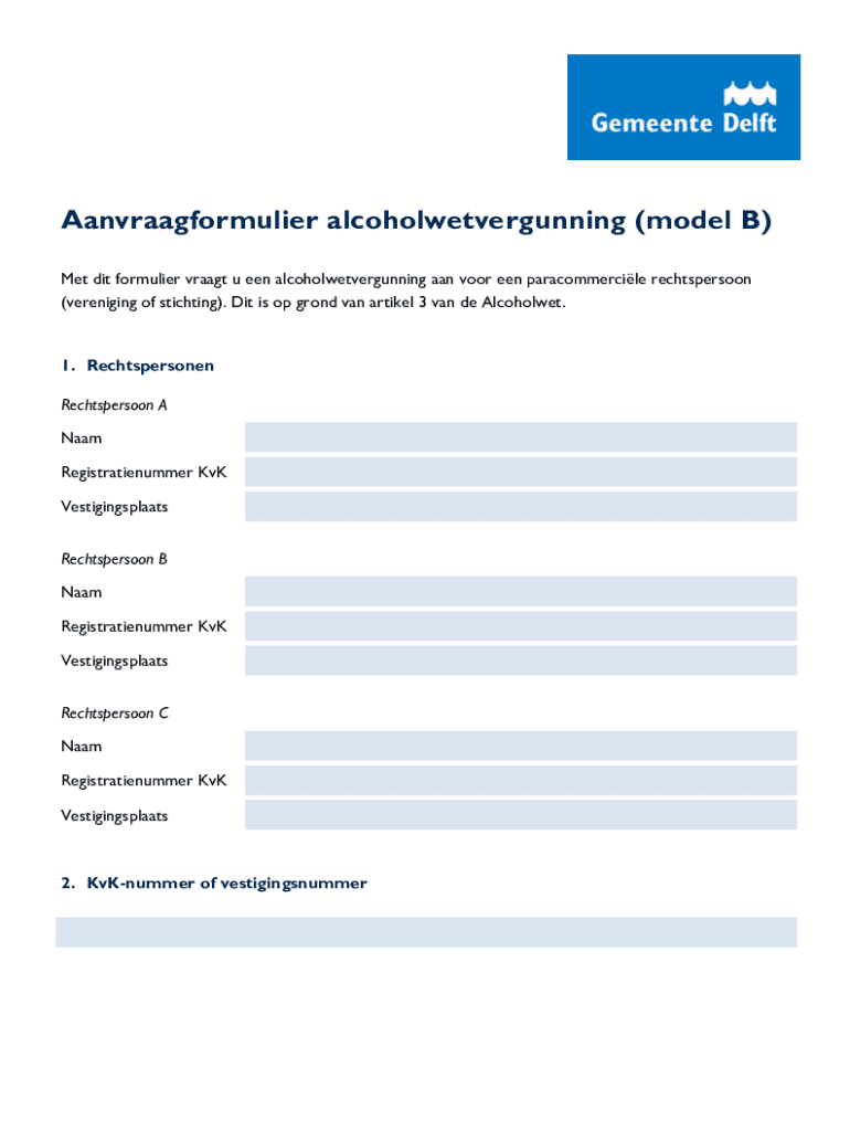 Aanvraagformulier alcoholwetvergunning (model B)