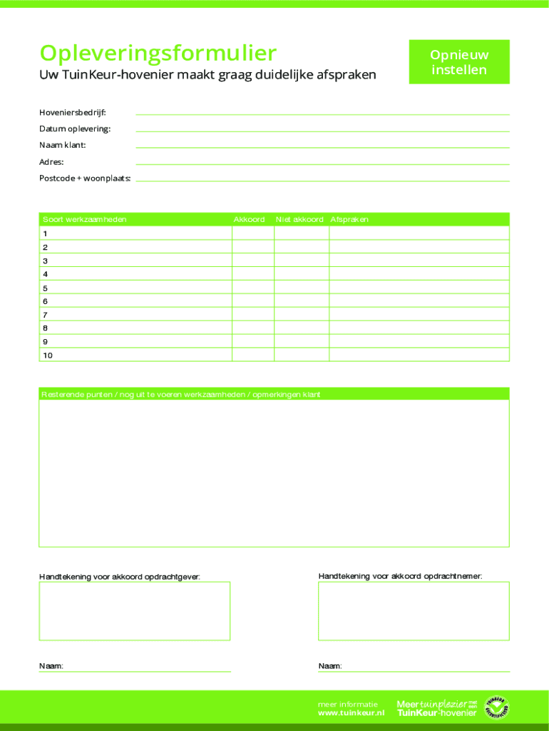 OpleveringsformulierUw TuinKeurhovenier make great guideline afsprakenOpnieuw
