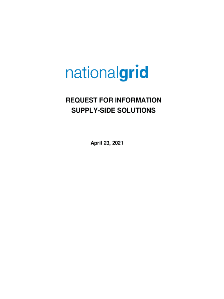 REQUEST FOR INFORMATION SUPPLYING SOLUTIONS April 23, 2021Request For Information Scheduled. Due Date for Inquiries All questions and requests for additional information concerning this Request for