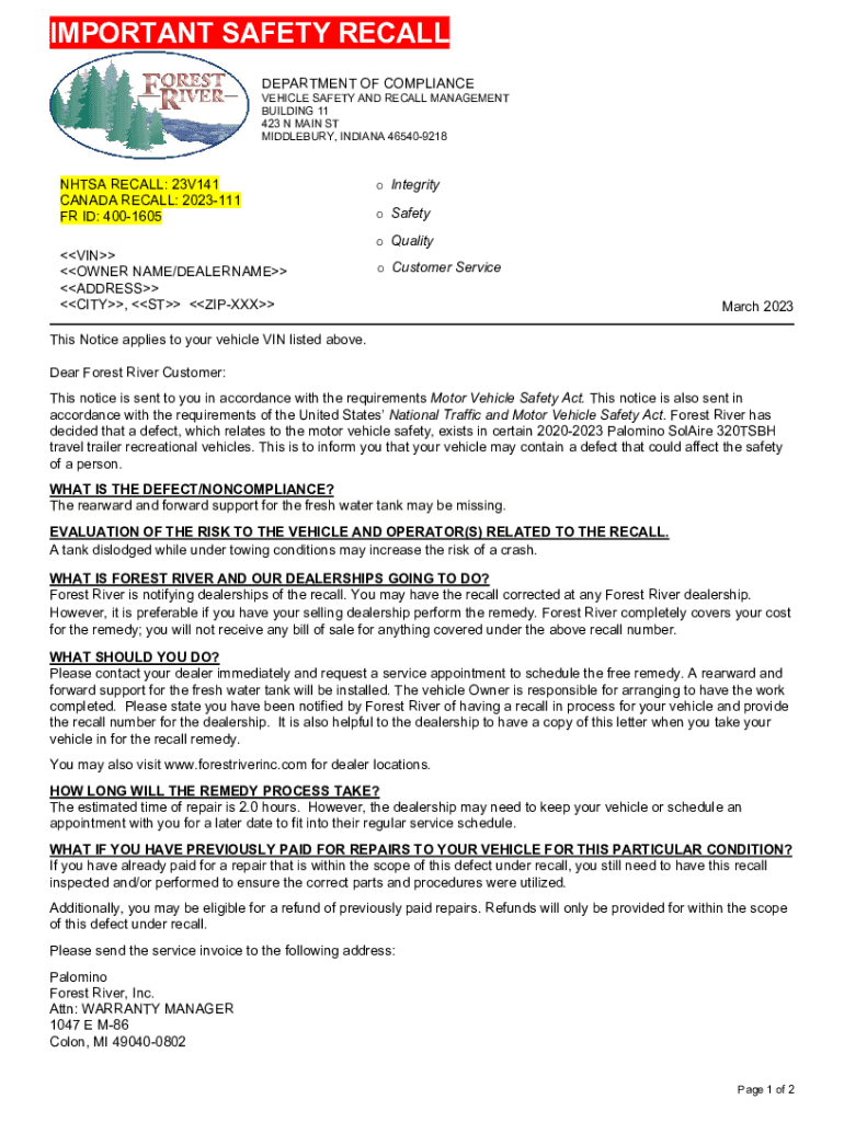 Nhtsa Recall 23V141 is not the form you're looking for?Search for another form here.