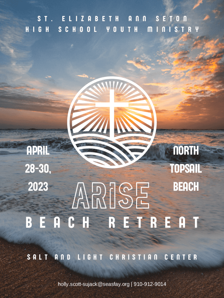 S T. E L I Z A B E T H A N N S E T O N H I G H S C H O O L Y O U T H M I N I S T R APRIL 2830, 2023ARISEB E A CH NORTH TOPSAIL BEACH E T R E A SALT AND LIGHT CHRISTIAN CENTERholly.scottsujack@seasfay.org