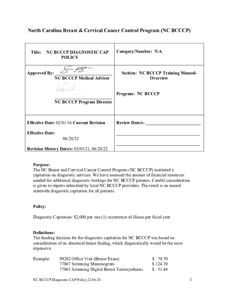 North Carolina Breast & Cervical Cancer Control Program (NC CCCP)Title:NC CCCP DIAGNOSTIC CAP