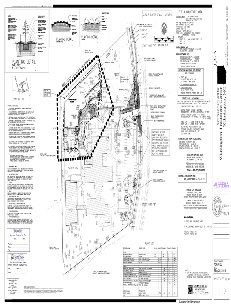 NTSOAKZONING: O&I1 LAND USE: VACANTUNDISTURBED EARTH4OAK4OHED 8WHOLLYWCRAPE MYRTLEOAKOAK7 CH7 CH20.0\' CHERRYWWOHEWASI#158W6OAKCEDAR CHERRYWMAPLE913PINE2GUM5 IHOAKMAPLE20Approved Construction PlanOAK215GUM14
