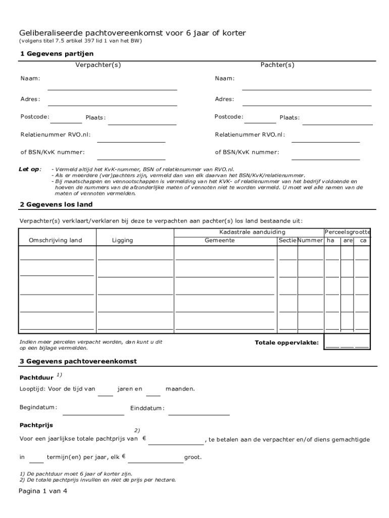 Hoe vul je pachtovereenkomst art 7397 lid in?