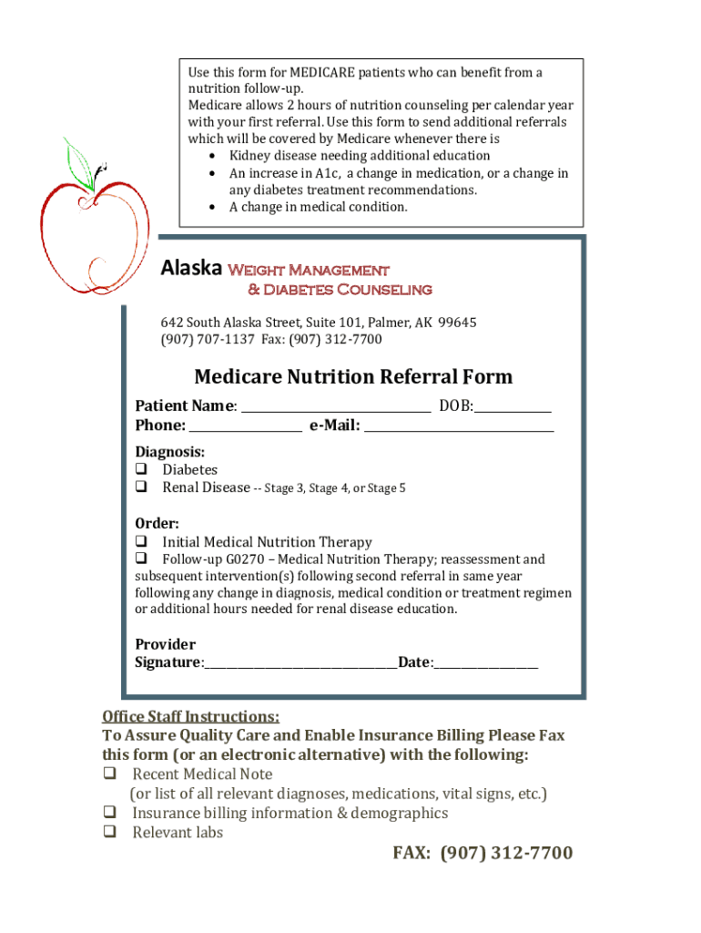 Get the free Medicare Nutrition Referral Form