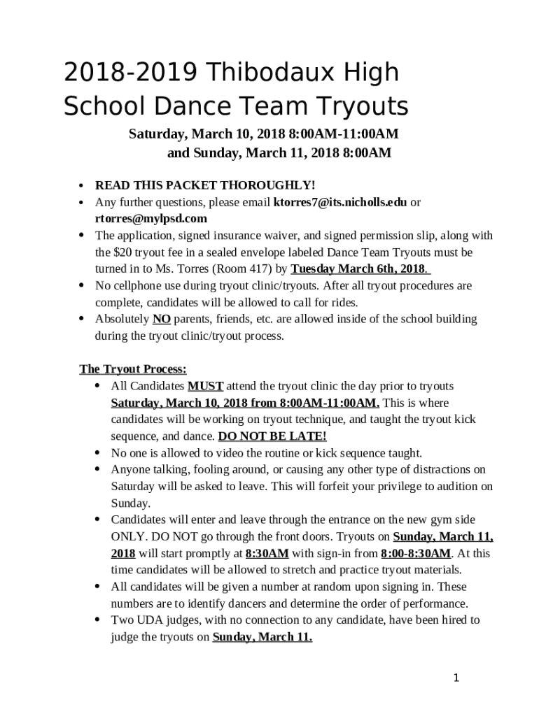 Instructions for the Nicholls State Dance Team - Home form