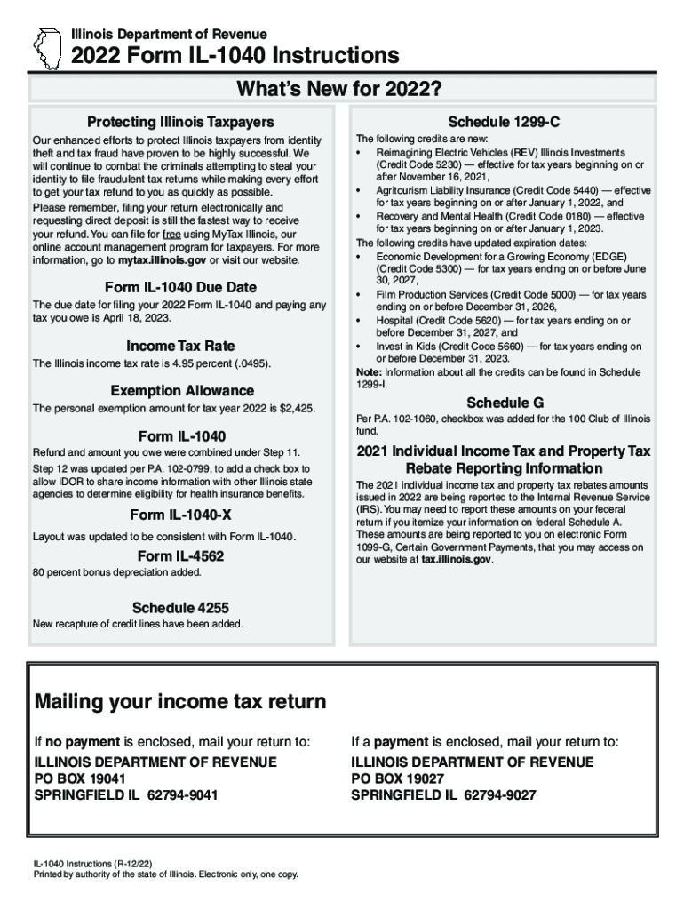 Illinois Department of Revenue2022 Form IL1040 Instructions What's New for 2022? Protecting Illinois Taxpayers enhanced efforts to protect Illinois taxpayers from identity theft and tax fraud have