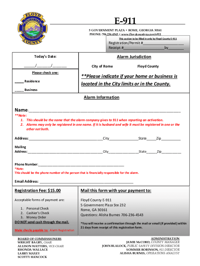 Get the free Online Alarm Registration Form - Rome/Floyd ...
