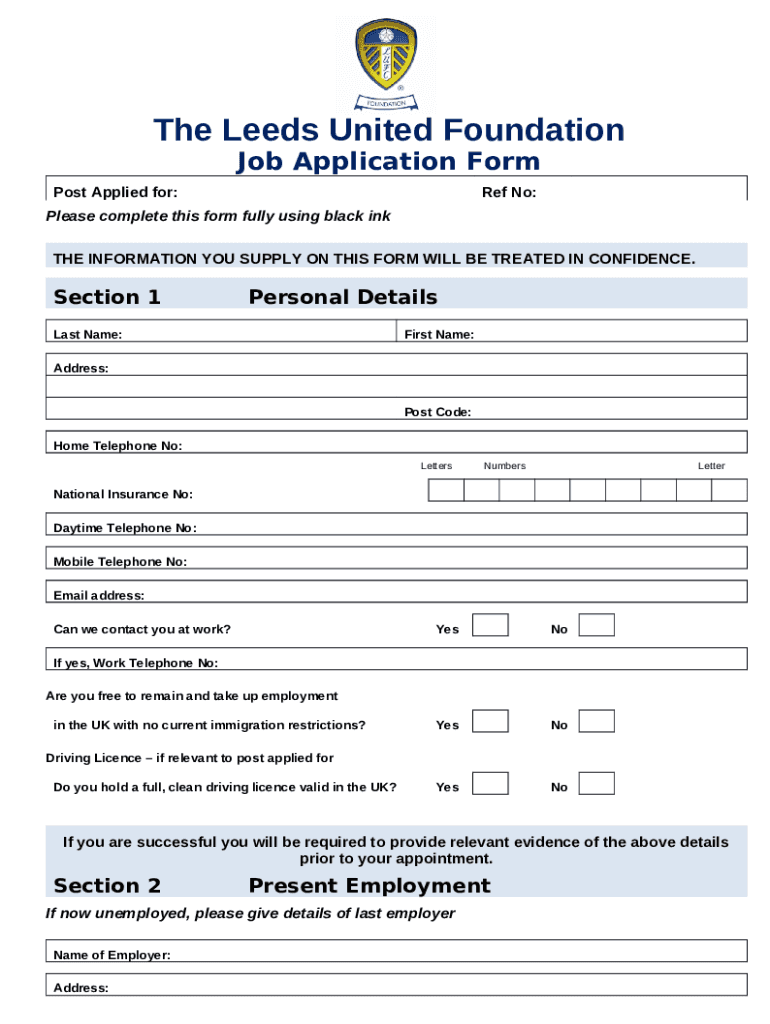 What is The Leeds United Foundation Job Application Form?