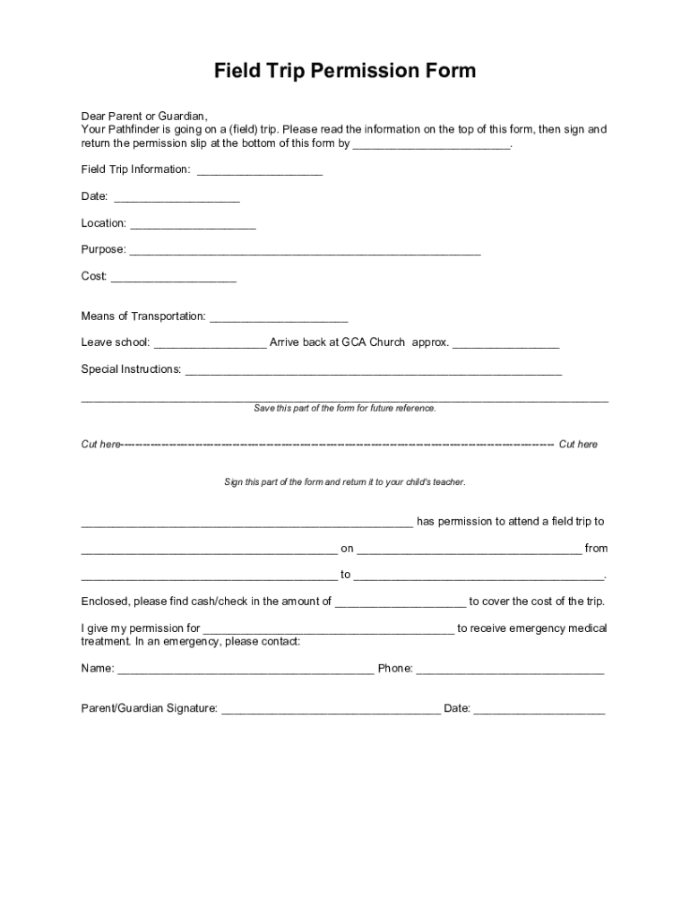 Fill out your field trip permission form online with pdfFiller!