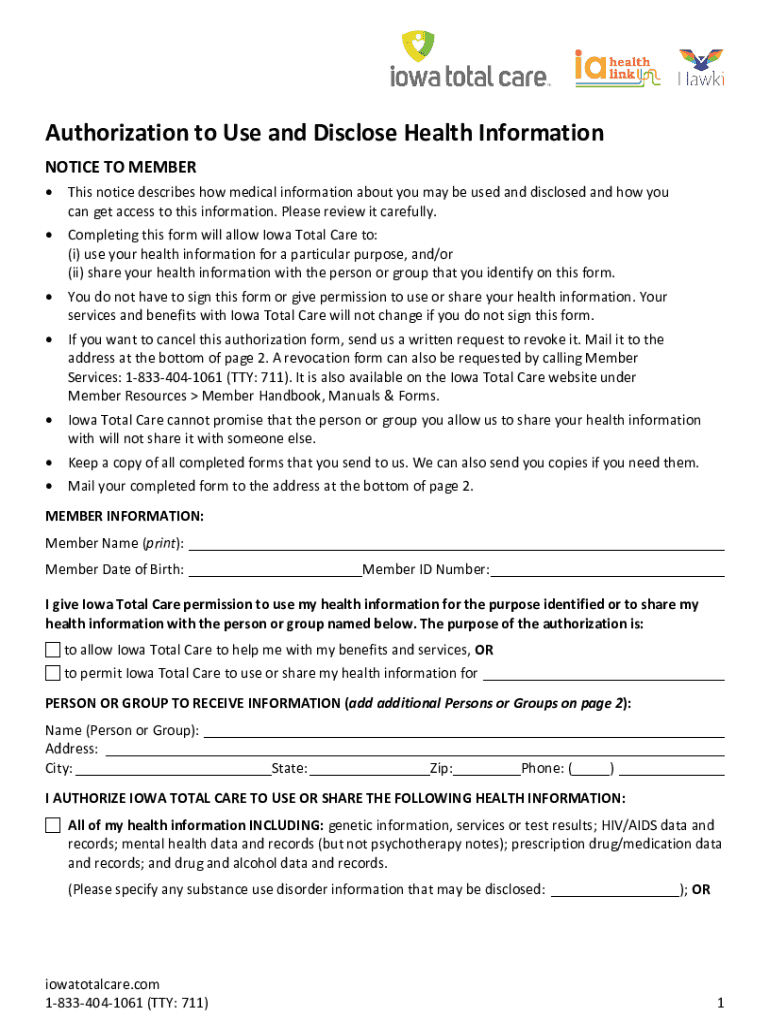 Authorization to Use and Disclose Health Information NOTICE TO MEMBER This notice describes how medical information about you may be used and disclosed and how you can get access to this information.