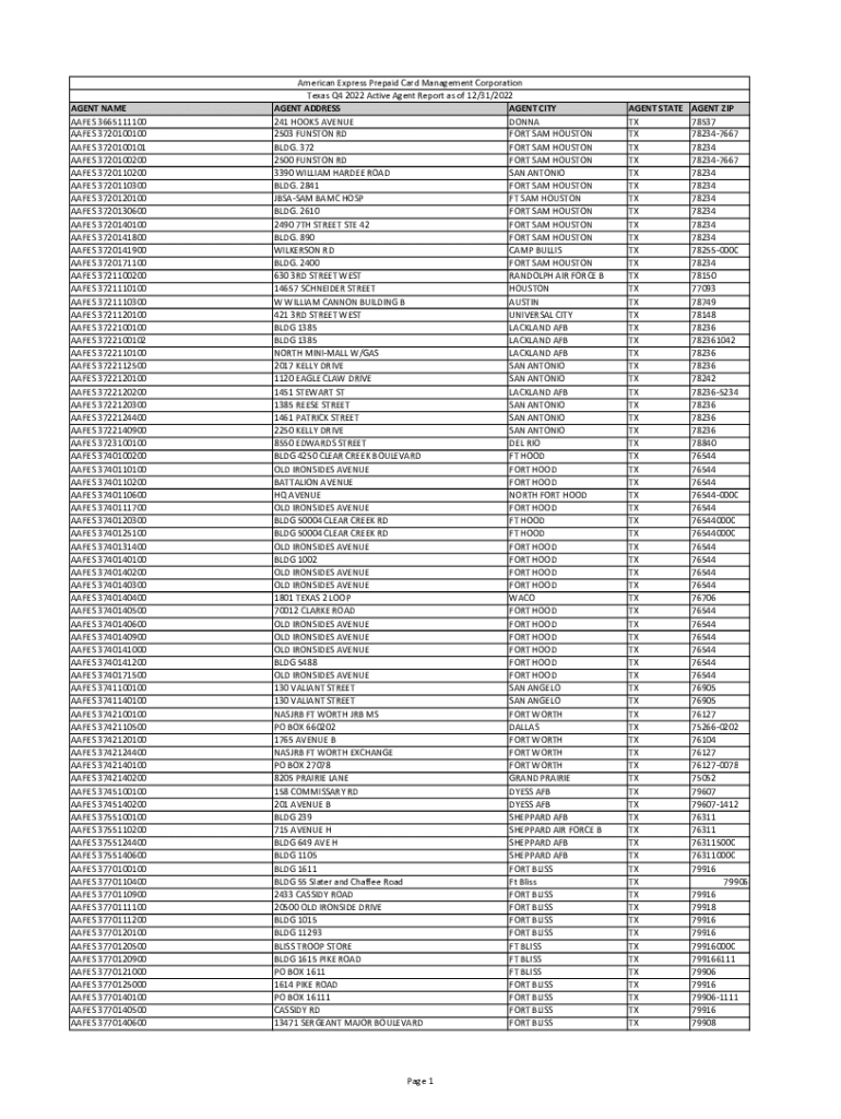 Get the free AGENT NAME AGENT ADDRESS AGENT CITY AGENT STATE ...