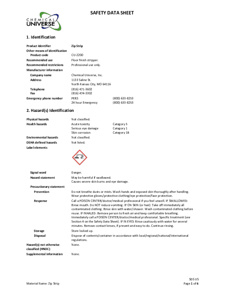 SAFETY DATA SHEET1. Identification Product Identifier Other means of identification Product code Recommended use Recommended restrictions Manufacturer information Company name Address Telephone Fax