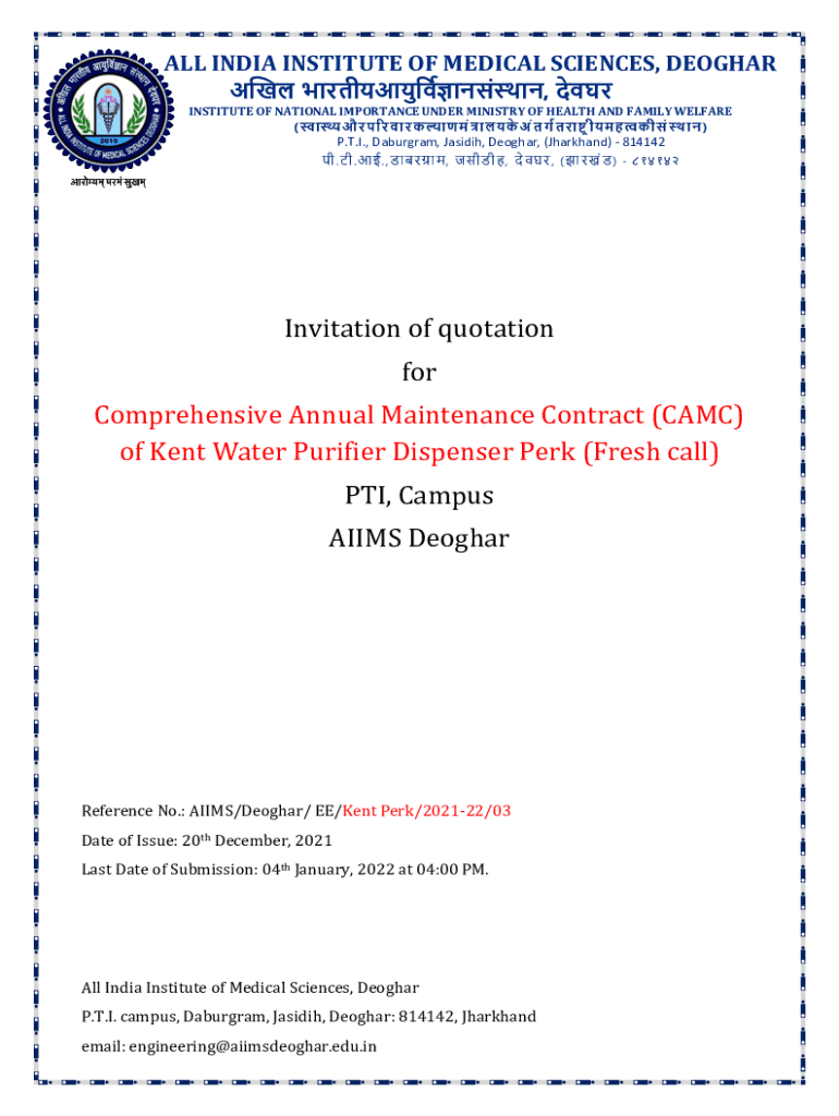 ALL INDIA INSTITUTE OF MEDICAL SCIENCES, DOLLAR, INSTITUTE OF NATIONAL IMPORTANCE UNDER MINISTRY OF HEALTH AND FAMILY WELFARE