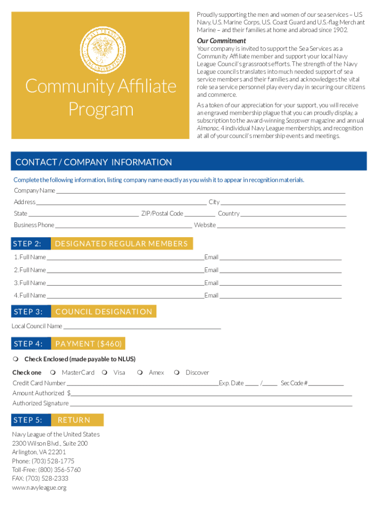 Navy League of Form can be filled out by providing accurate and complete information as requested on the form.