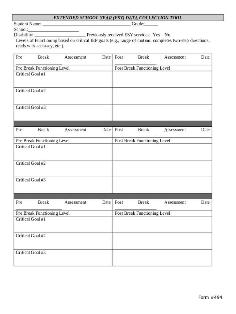 How to fill out 7 Standards for Extended School Year (ESY) Services