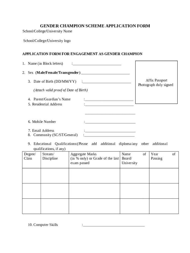 What is Application for Engagement as Gender Champion Form?
