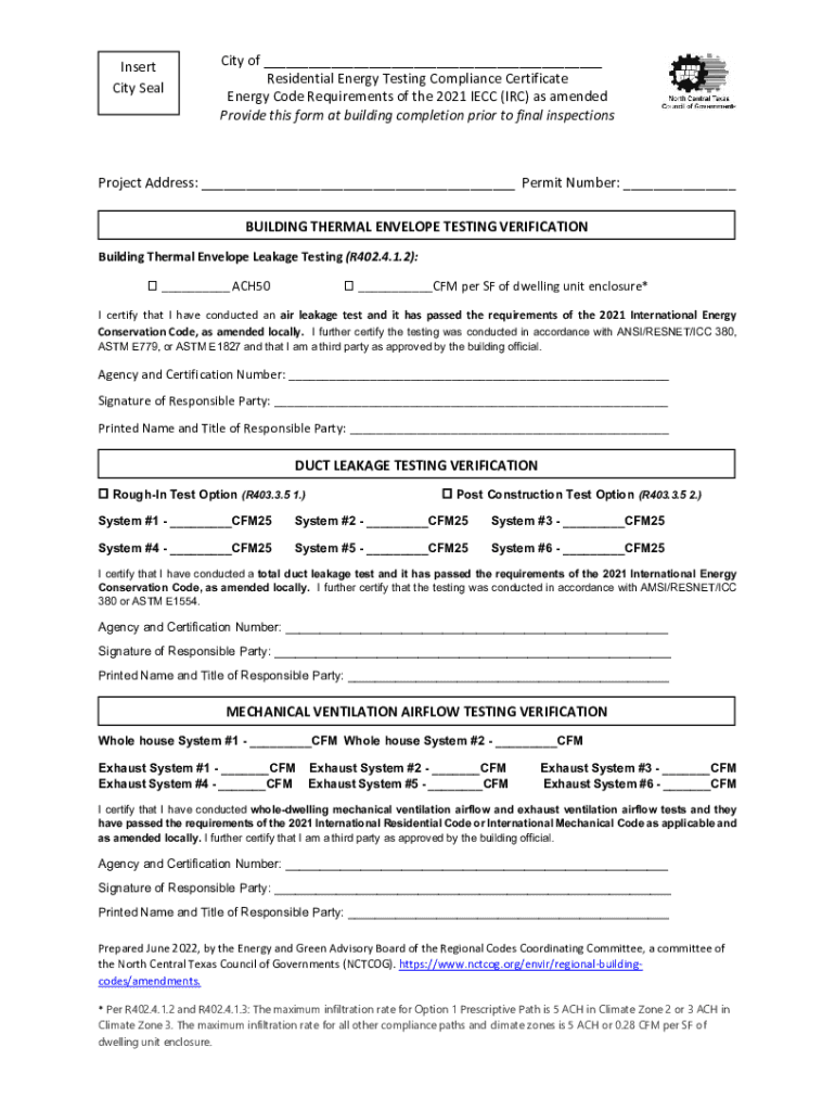 Get the free Residential Energy Testing Compliance Certificate ...