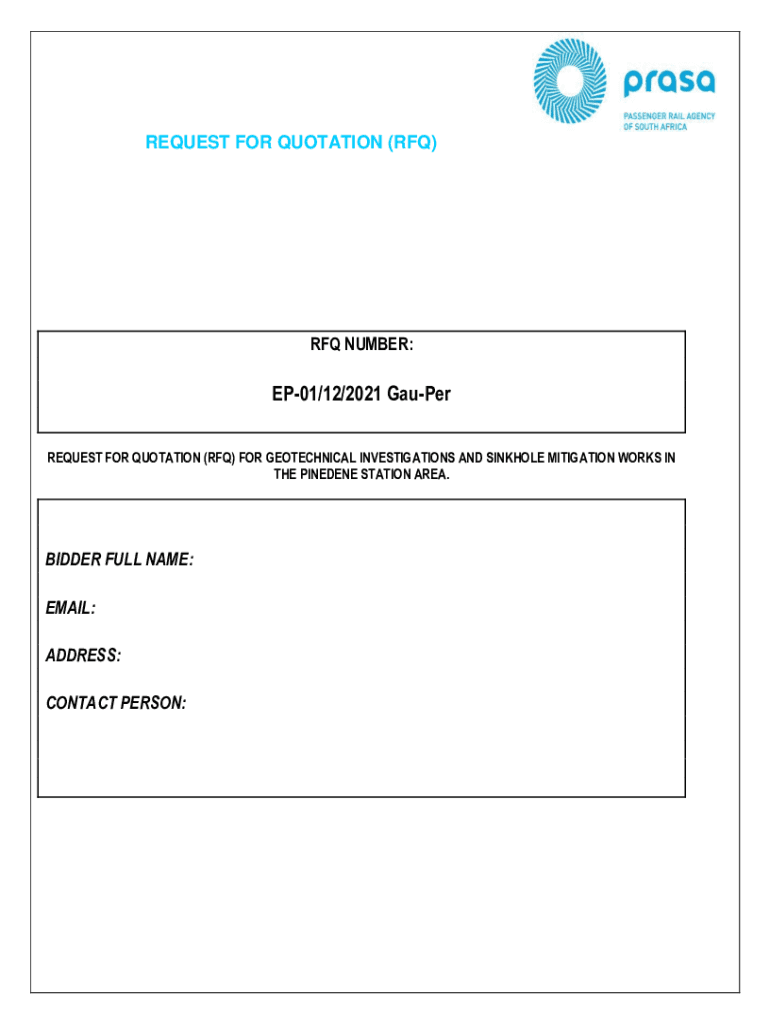 REQUEST FOR QUOTATION (RFQ)RFQ NUMBER:EP01/12/2021 Pauper
