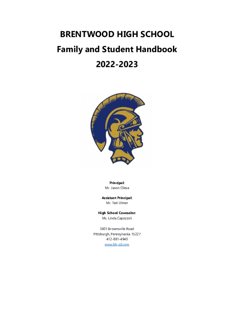 BRENTWOOD HIGH SCHOOL Family and Student Handbook 20222023Principal: Mr. Jason Alexa Assistant Principal: Mr. Ted Elmer High School Counselor: Ms. Linda Capozzoli 3601 Brownsville Road Pittsburgh,