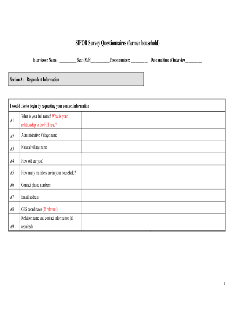 FOR Survey Questionnaires (farmer household) Interviewer Name___ Sex: (M/F)___Phone number: ___ Date and time of interview___ Section A:Respondent Information would like to begin by requesting your