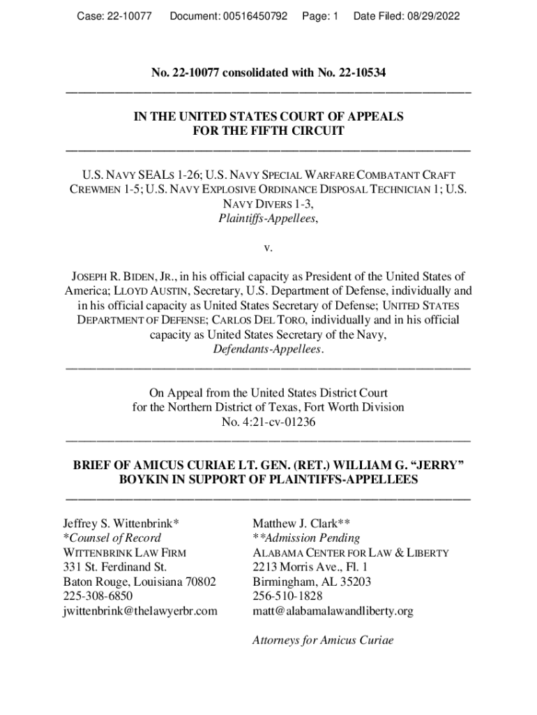 Case: 2210077Document: 00516450792Page: 1Date Filed: 08/29/2022No. 2210077 consolidated with No. 2210534 ___ IN THE UNITED STATES COURT OF APPEALS FOR THE FIFTH CIRCUIT ___ U.S. NAVY SEALS 126; U.S.
