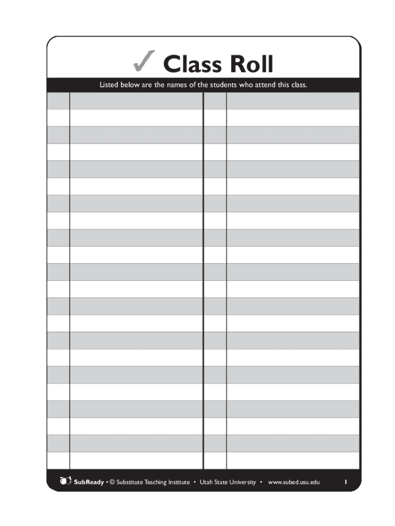 Class Roll Listed below are the names of the students who attend this class. Unready Substitute Teaching Institute Utah State University www.subed.usu.edu1Seating Chart This is a diagram of where