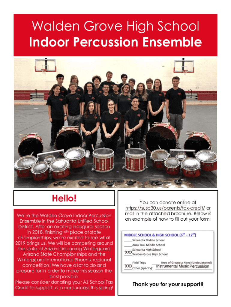 Walden Grove High School Indoor Percussion EnsembleHello! Were the Walden Grove Indoor Percussion Ensemble in the Sahuarita Unified School District. After an exciting inaugural season in 2018, finishing