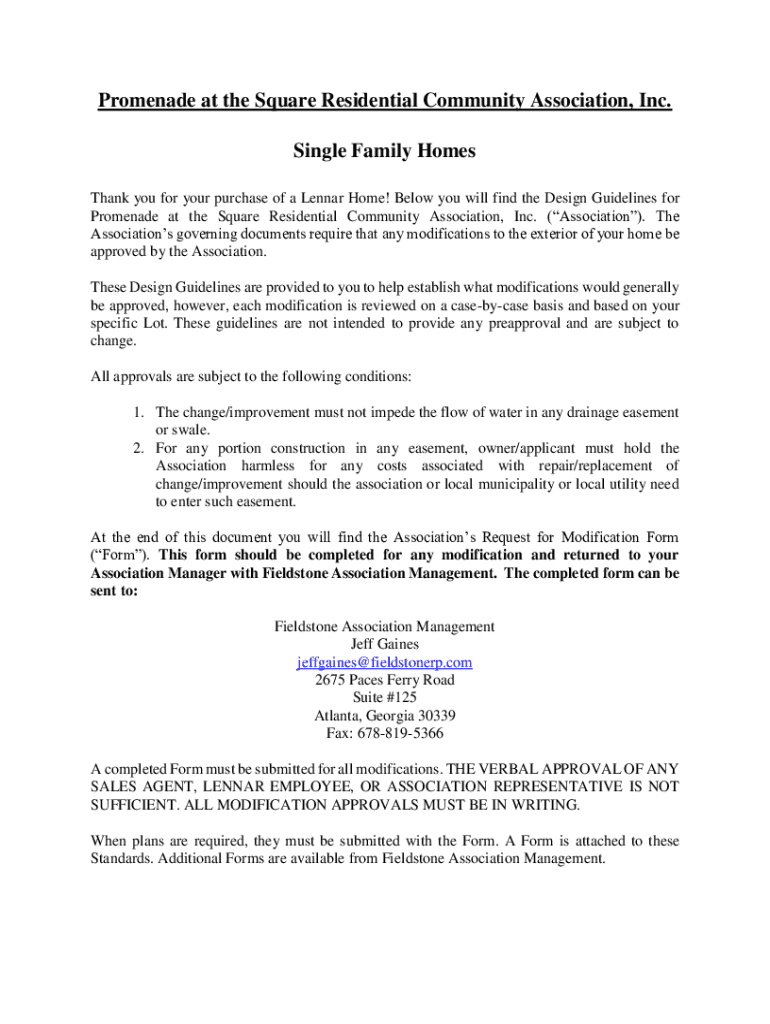 Promenade at the Square Residential Community Association, Inc. Single Family Homes Thank you for your purchase of a Linear Home! Below you will find the Design Guidelines for Promenade at the Square