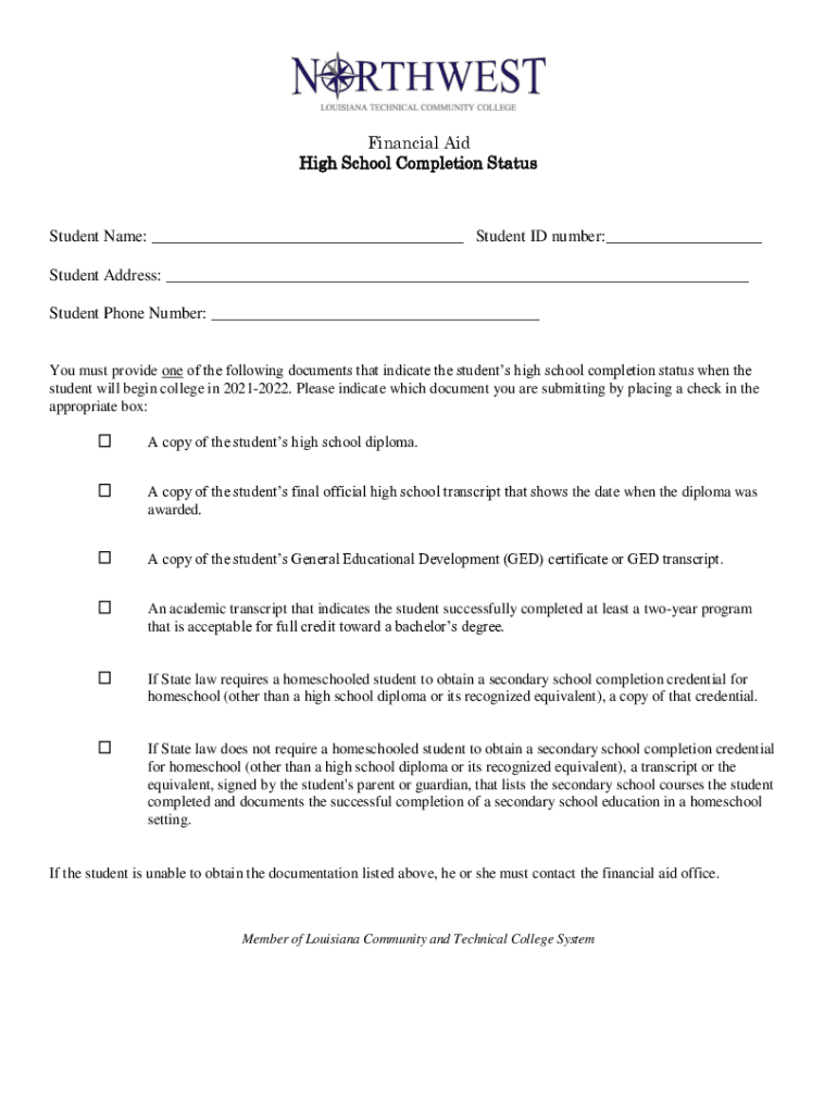 High School Completion StatusStudent Name: ___ Student ID number:___