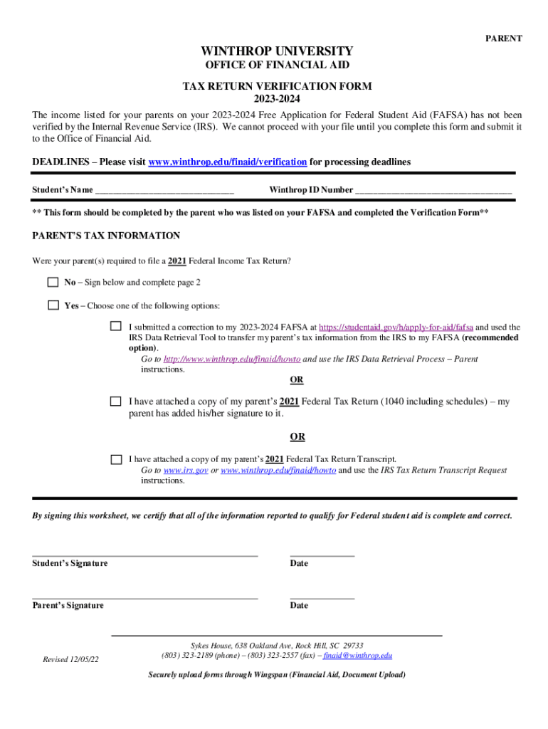 Get the free Office of Financial Aid Tax Return Verification Form 2023- ...