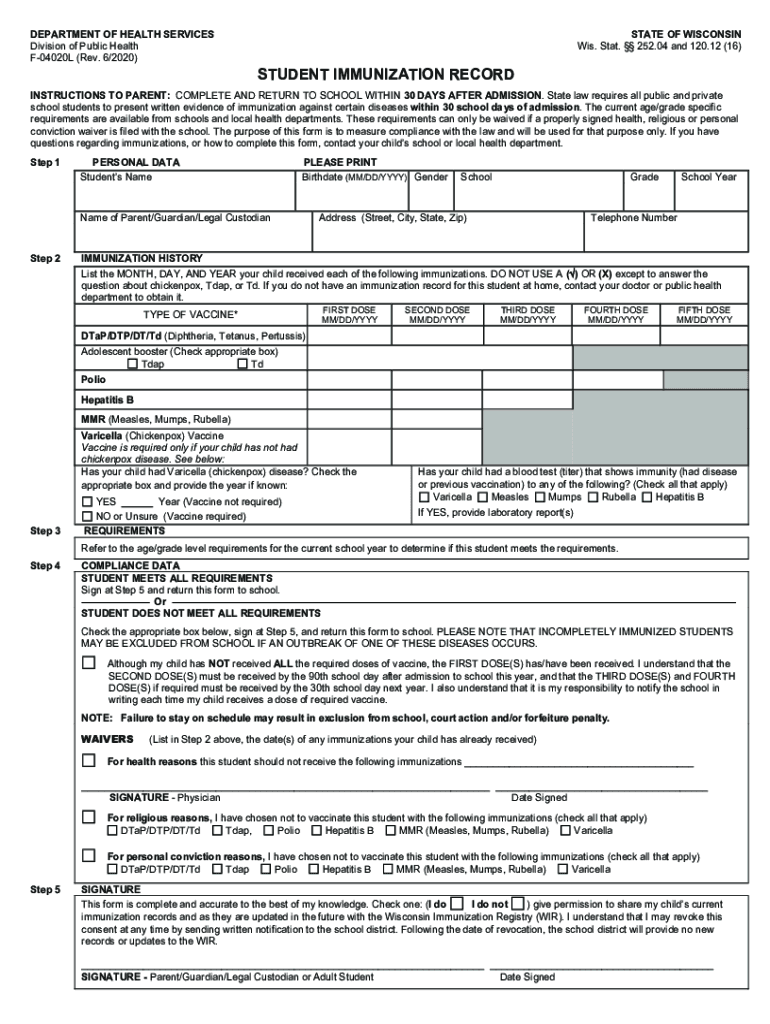 Wisconsin School Immunization Requirements20222023Department of Health Services Division of Public Health Bureau of Communicable Diseases Immunization Program P44545 (08/2022)DIVISION OF PUBLIC HEALTH