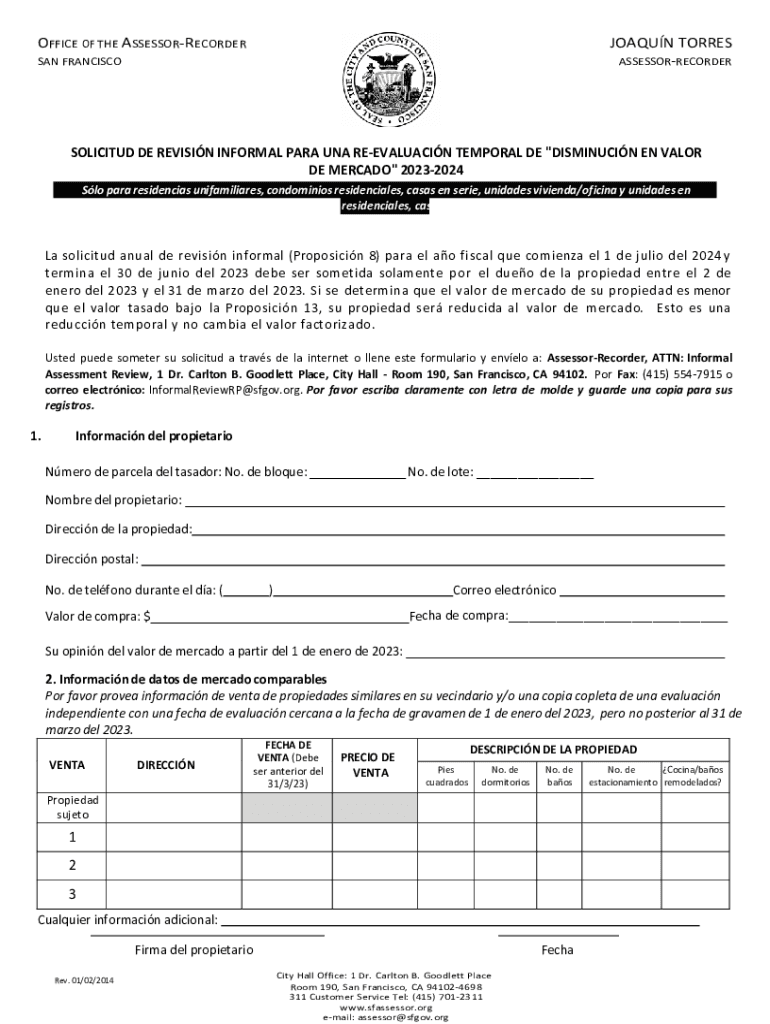 ASSESSORRECORDERSAN FRANCISCOSOLICITUD DE REVISION INFORMAL PARA RNA REEVALUATION TEMPORAL DE \” DIMINUTION EN VALOR